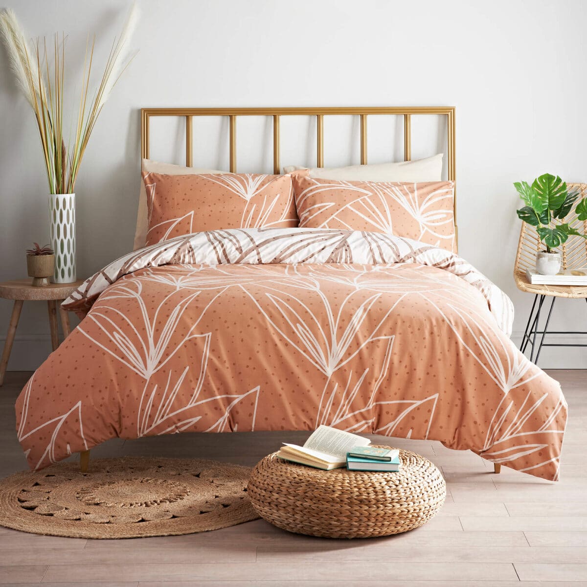 Make your bed your happy place with the Cosmo Living Sunset Leaf Duvet Set, the perfect balance of comfort and style.