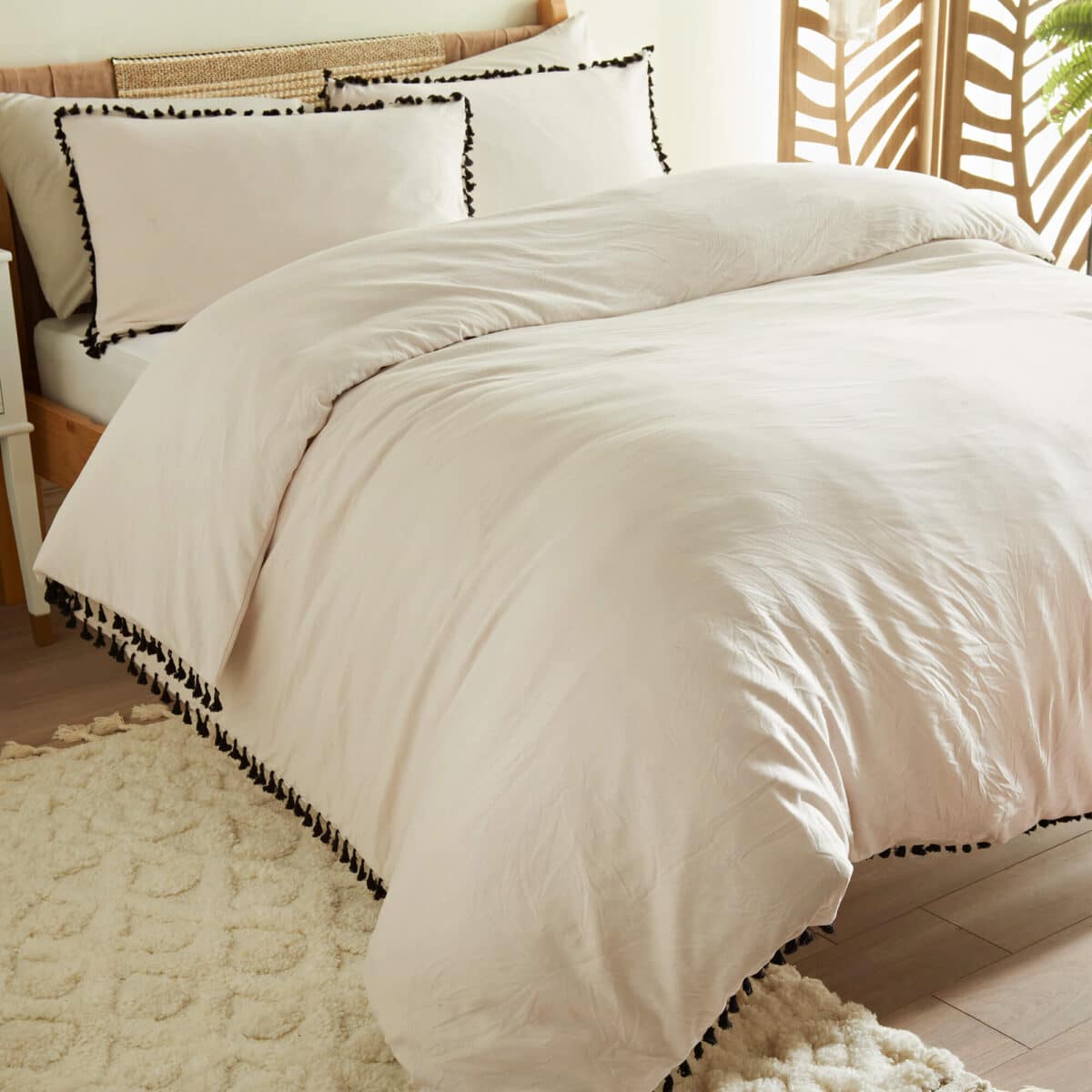 Make your bed your happy place with the Cosmo Living Tassel Duvet Set, boho glam inspired with a modern twist!