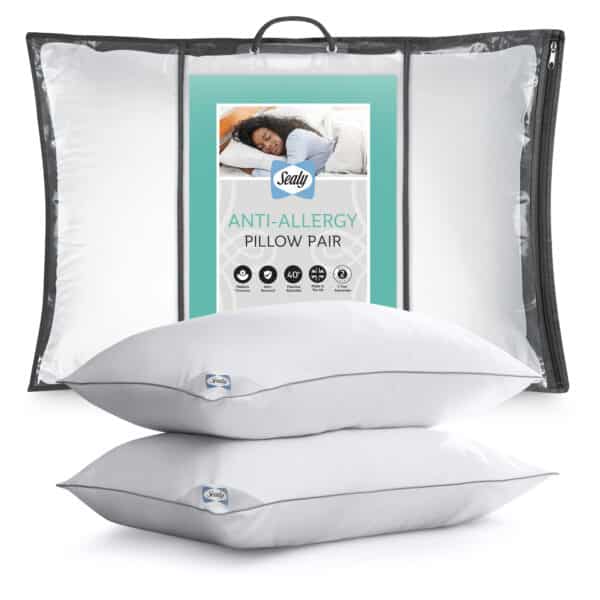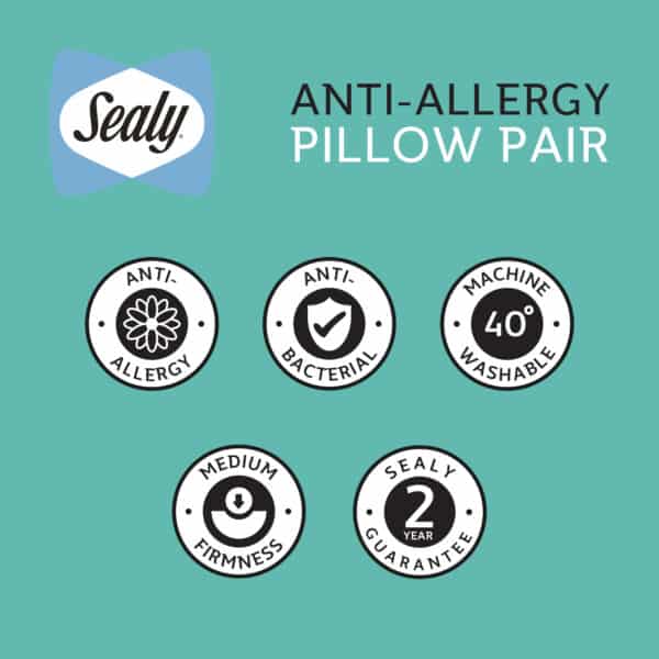 The Sealy Anti-Allergy Pillows are filled with anti-allergy hollowfibre to offer added protection against bacteria to keep your pillows fresh, comfortable and hygienic for longer. Anti-allergy hollowfibre technology works to remove all common bed bugs and house dust mites for a clean, fresh and skin-safe sleep surface.