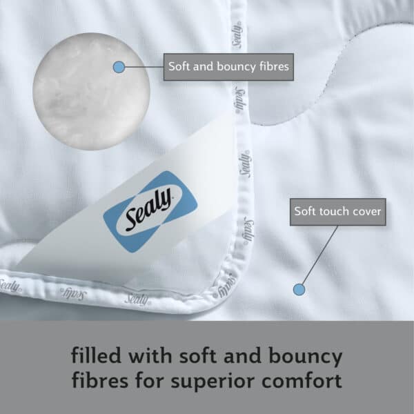 The Sealy Deeply Full Duvet has been expertly crafted to enhance your sleep. Generously filled with luxuriously bouncy fibres, for superior heavenly-like comfort and covered in a silky-smooth luxury microfibre cover for a luxurious sleep.