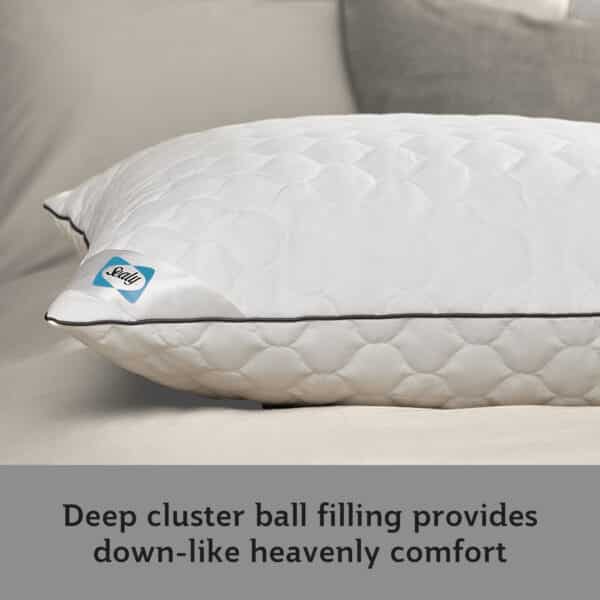 The Sealy Deeply Full Pillow has been expertly crafted to enhance your sleep. Inside the pillow is luxurious Fibadown™ cluster ball filling which offers a soft and silky down-like feeling. Generously filled to offer the ultimate culmination of gentle support for the head and neck along with heavenly comfort.