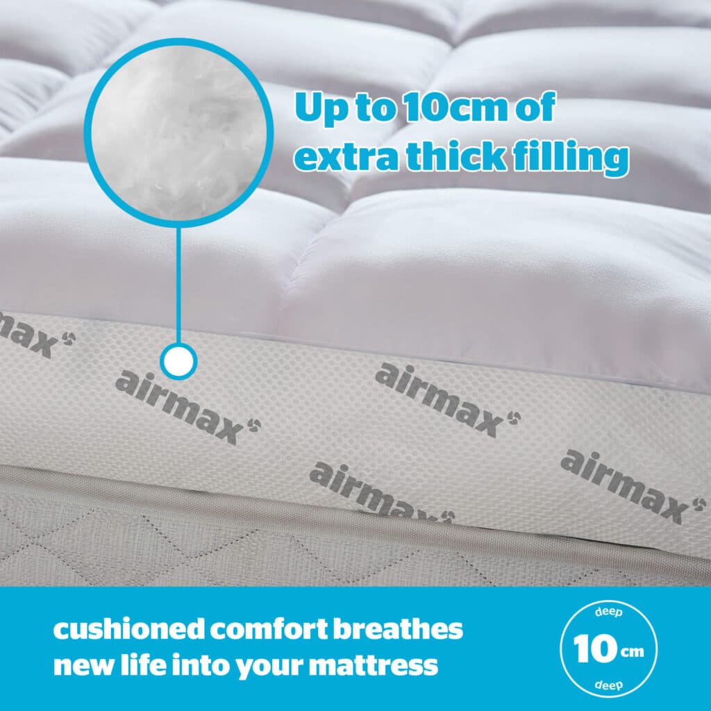 - SUPREME COMFORT: The Airmax topper breathes new life into your bed by adding an extra 10cm of cushioned comfort on top of your mattress.