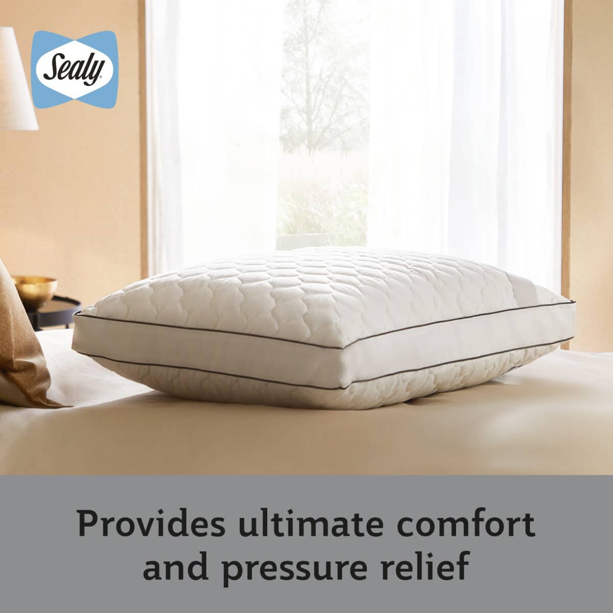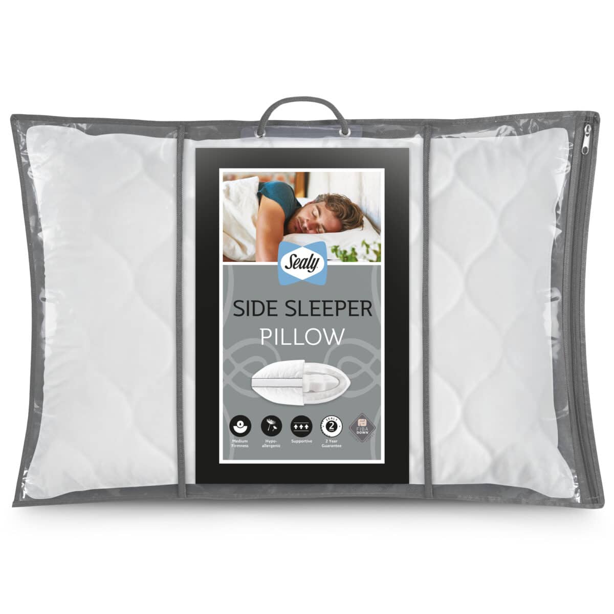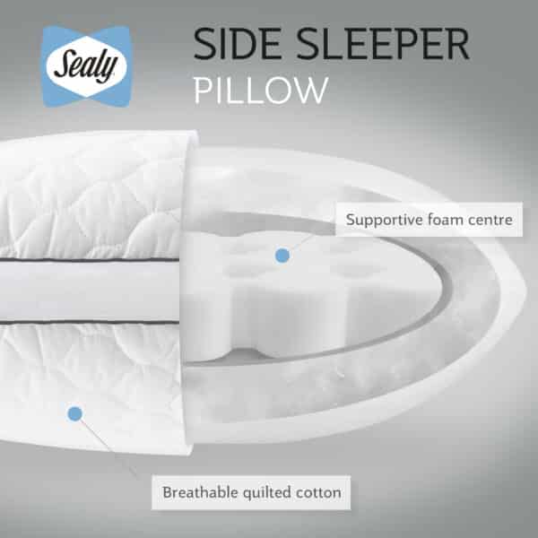 The Sealy Side Sleeper Pillow combines long-standing craftsmanship with the latest innovations. The deeply supportive foam centre helps to encourage the neck and spine to remain in a straight and neutral position for ultimate comfort and posture support while you sleep.