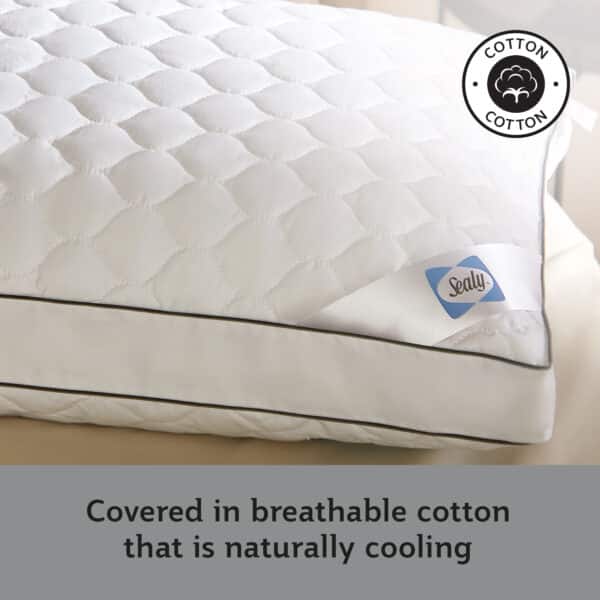 The Sealy Side Sleeper Pillow combines long-standing craftsmanship with the latest innovations. The deeply supportive foam centre helps to encourage the neck and spine to remain in a straight and neutral position for ultimate comfort and posture support while you sleep. The foam comfort layer is ventilated to encourage air to move around the pillow to keep you fresh and comfortable. Fibadown™ fibres surround the foam centre and offer soft and bouncy superior comfort.
