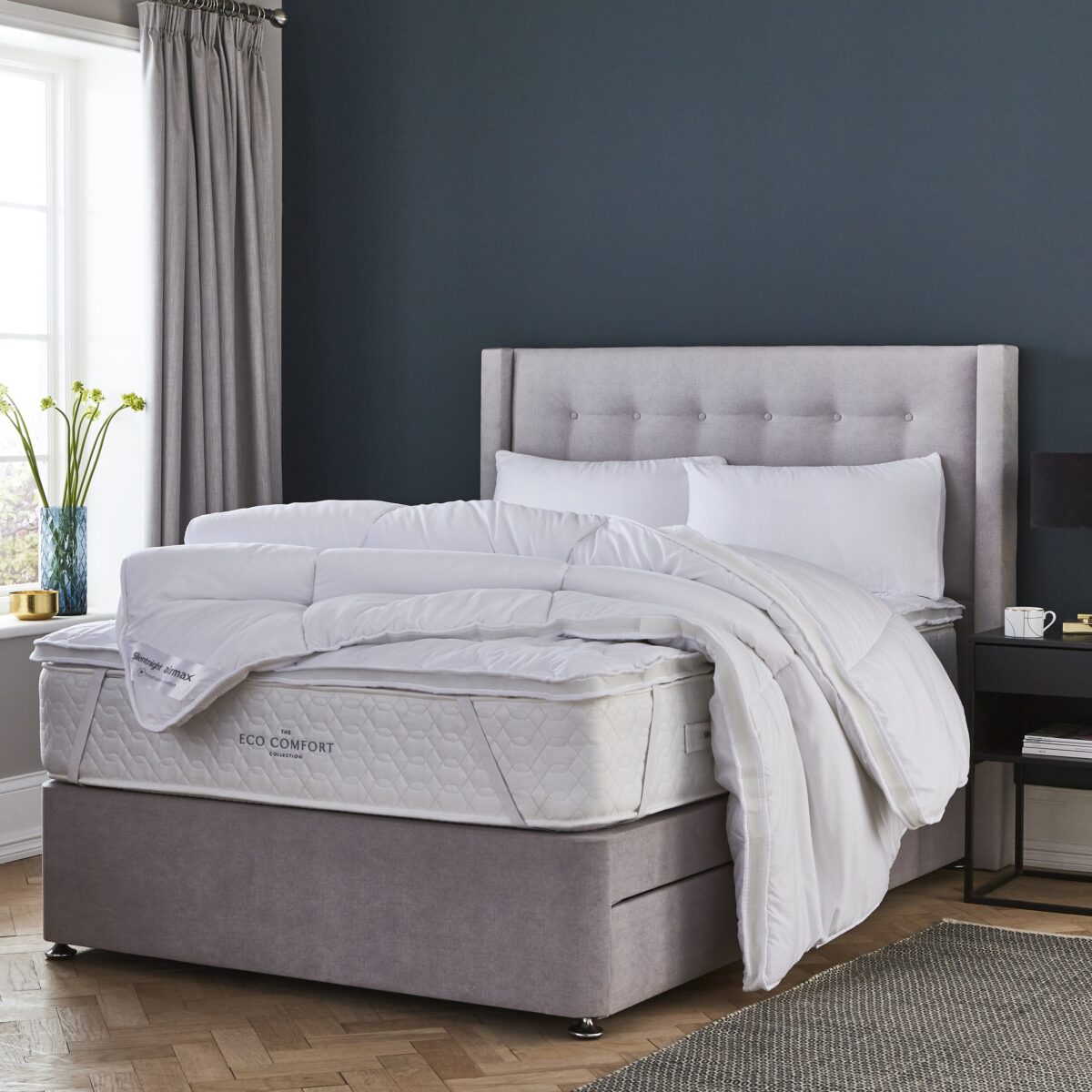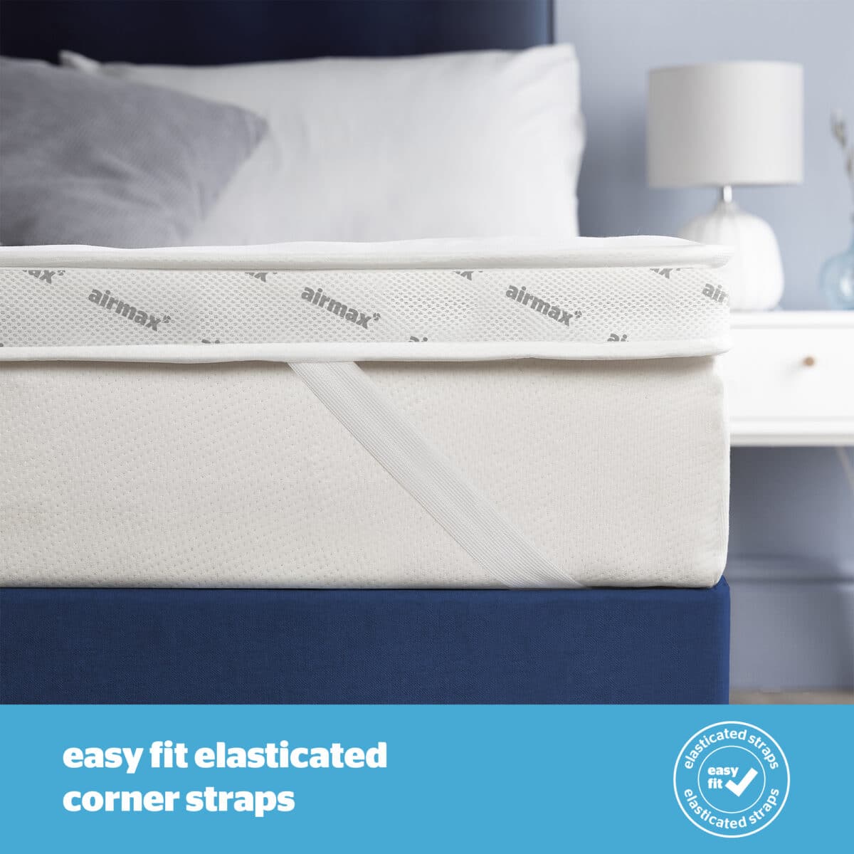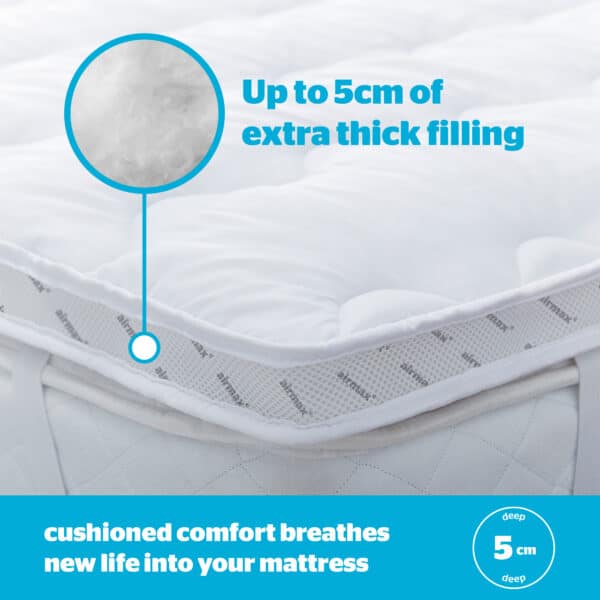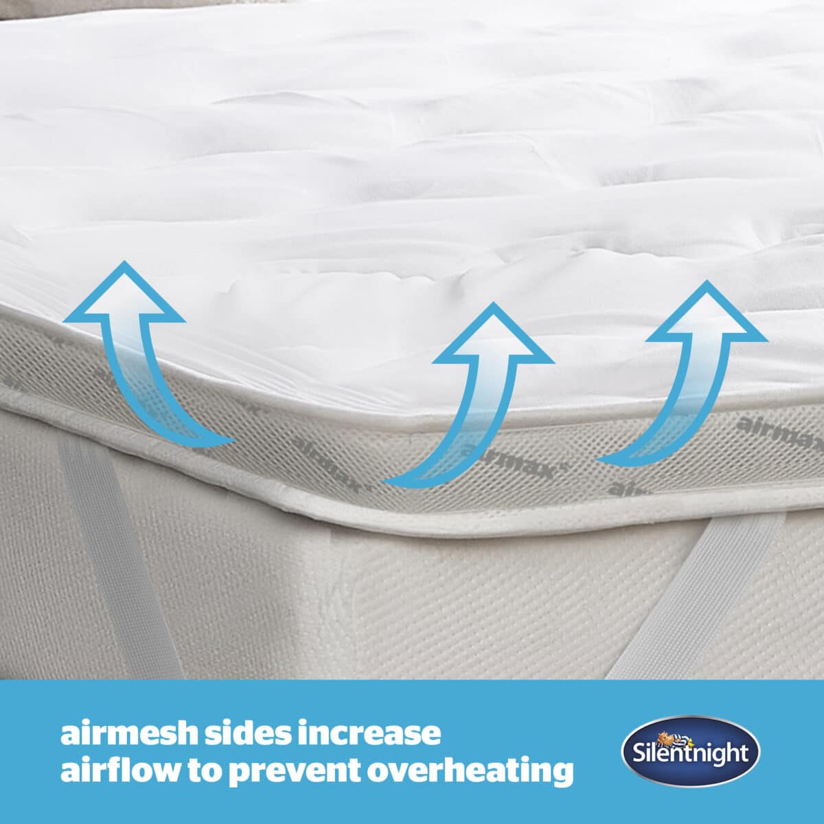 Specially designed to increase airflow and circulation, the Airmax pillow features air mesh sides to help air to move freely around your head to prevent overheating and to keep you comfortable in every season. The duvet has been specially constructed with air mesh sides which increase airflow inside the duvet. The 10.5 tog is ideal to use all year round. The topper’s Airmesh sidewall panelling offers maximum breathability and air circulation for a good nights sleep.