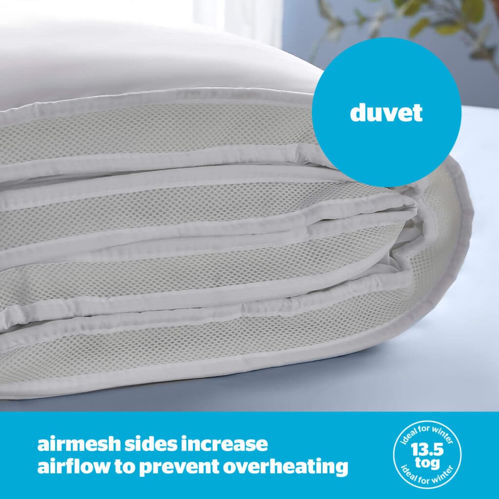 The Silentnight Airmax Duvet features a special construction that houses pockets of air between its layers to provide insulation for extra warmth with less weight to help you stay cosy and comfortable without overheating.