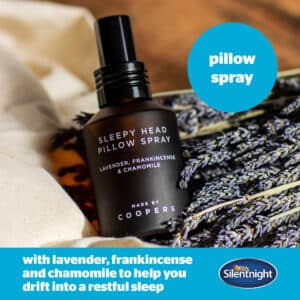 - PILLOW SPRAY: Drift into the perfect night's sleep with the award winning Sleepy Head pillow spray by Made by Coopers. The scent includes Organic Lavender, Frankincense and Chamomile which help aid sleep and relaxation.