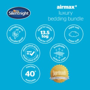 - COMPLETE UNI BEDDING BUNDLE: Everything you need in one refreshing bundle which includes the Silentnight Airmax 13.5 Tog Duvet, Silentnight Airmax 800 Mattress Topper, Silentnight Airmax Pillows, Silentnight Supersoft Fitted Sheet and a Made by Coopers Pillow Spray.