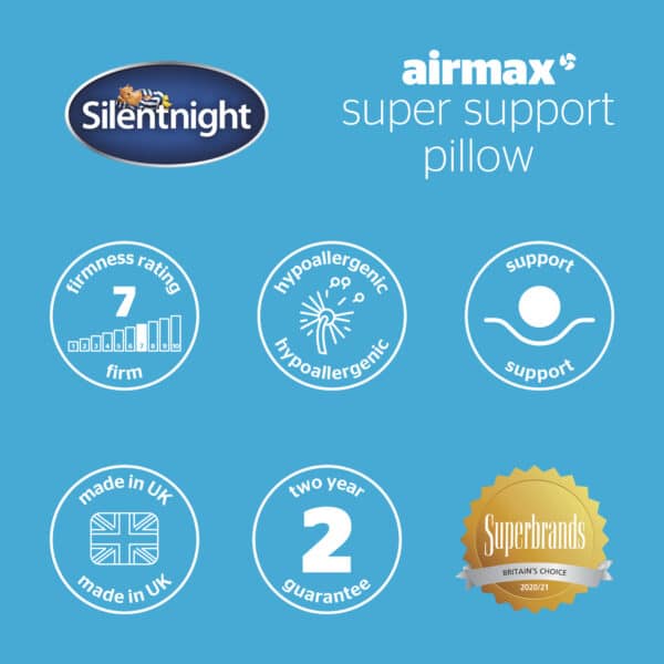 The Silentnight Airmax Super Support Pillow provides unparalleled breathability and support. A supportive foam centre lies within the heart of the pillow to offer optimum support.