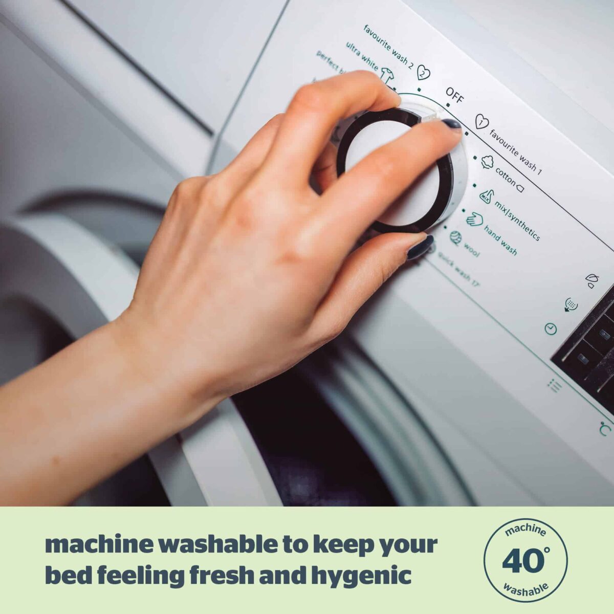 The Silentnight anti-allergy mattress topper is filled with anti-allergy hollowfibre that actively protects your bed from bacteria and dust mites to help prevent allergies. Our anti-allergy fibres are approved by the British Allergy Foundation, which means they have the ultimate seal of approval. The mattress topper is also fully machine washable which means you can keep your bed feeling fresh and clean for longer.