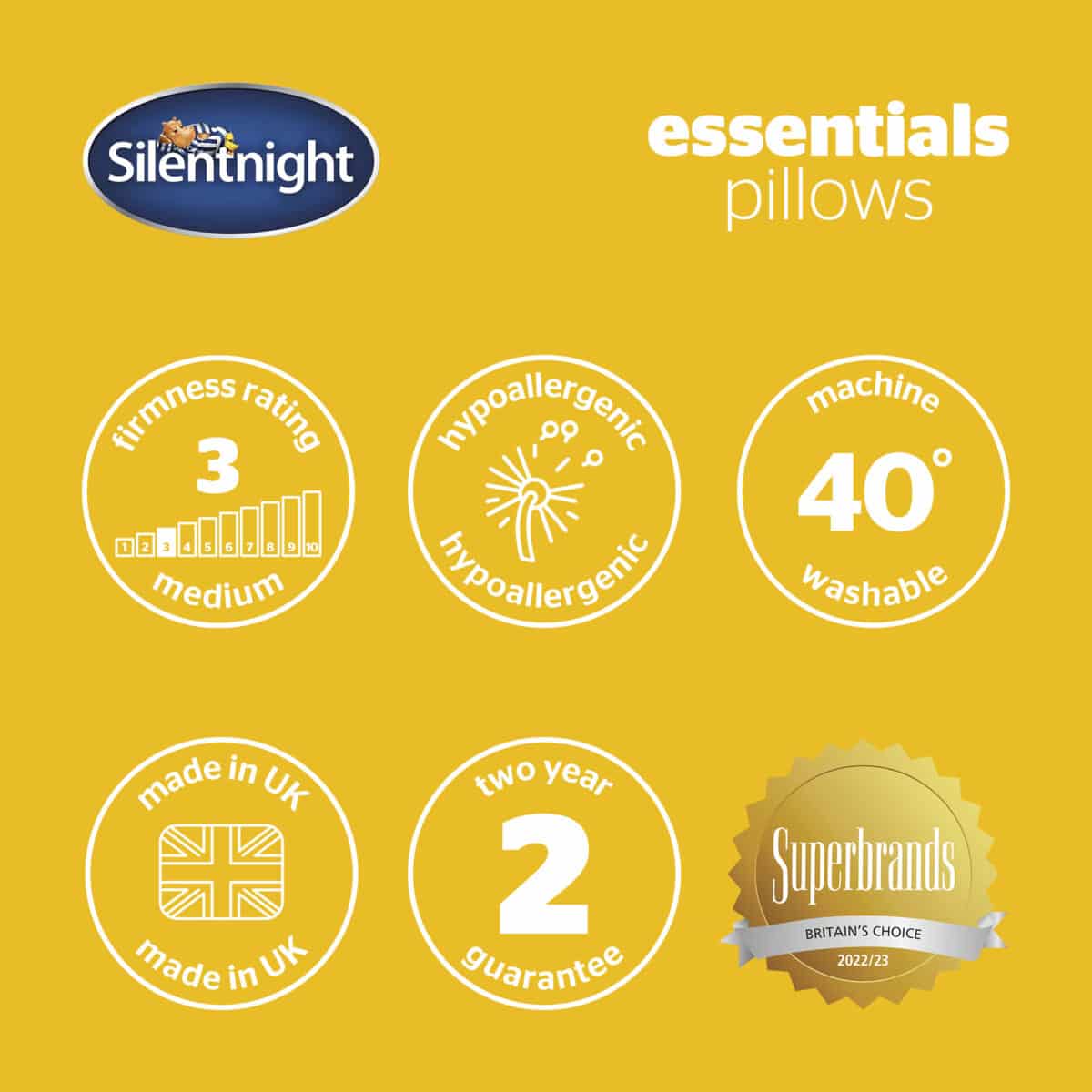 The Silentnight Essentials Pillows are filled with a hollowfibre filling which provides gentle support.