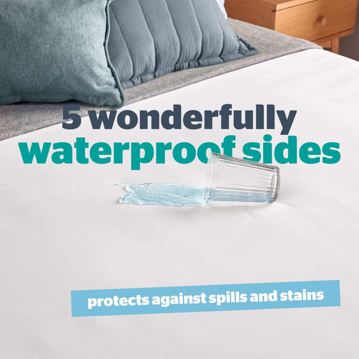 - COMPLETE PROTECTION: Provides full 360° protection for your mattress. Encasing all 6 sides, for complete protection against bed bugs & allergens. Waterproof top and sides to protect from spillages and moisture to keep your mattress fresh, dry and hygienic. Fits mattress depths up to 30cm.