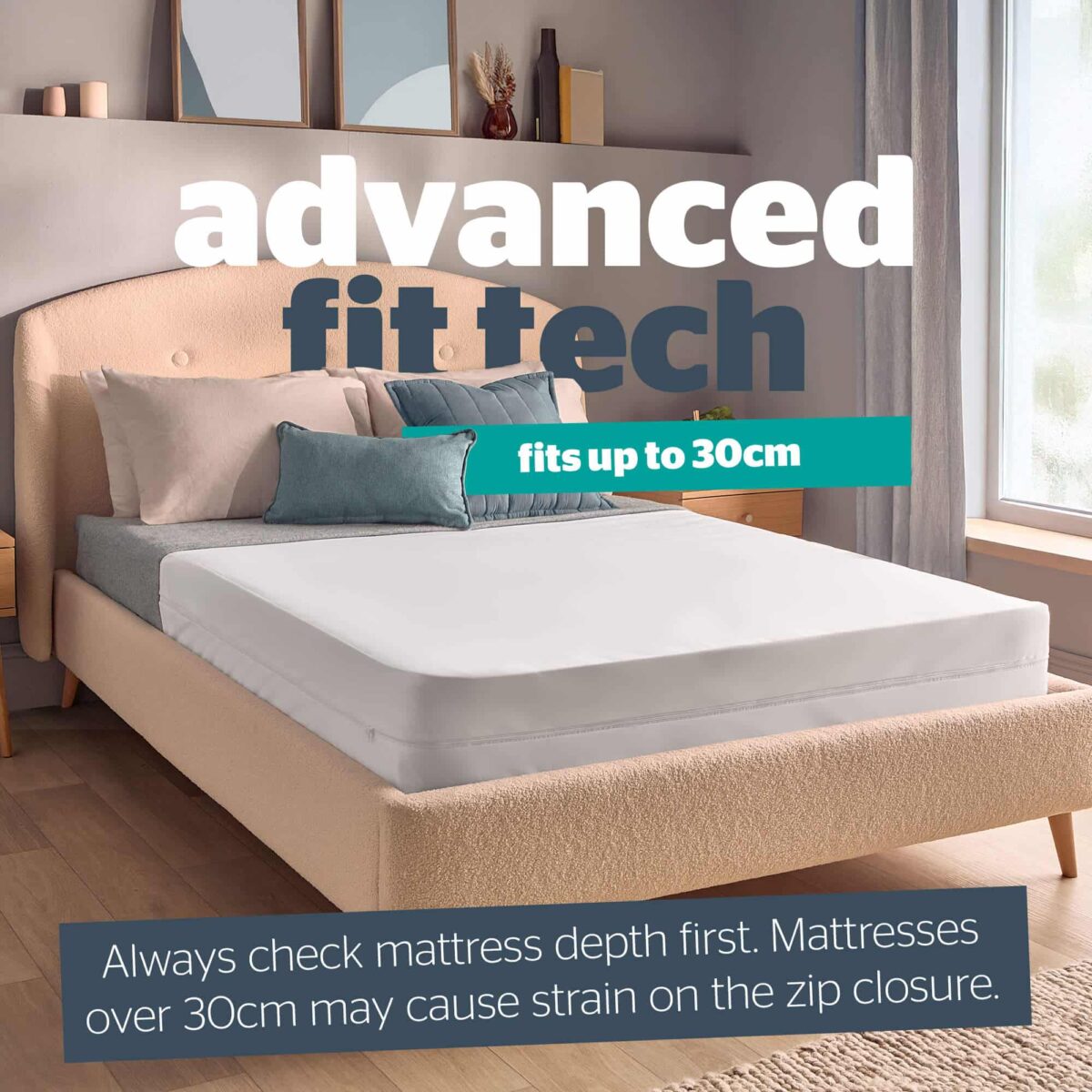 - SECURE ZIP: The secure zip maintains the complete protection for the mattress and allows for easy fitting and removal. Fits mattress depths up to 30cm. Please check your mattress depth to ensure a comfortable fit and prevent any strain on the zip closure.