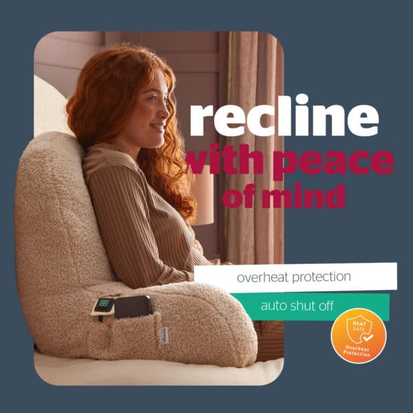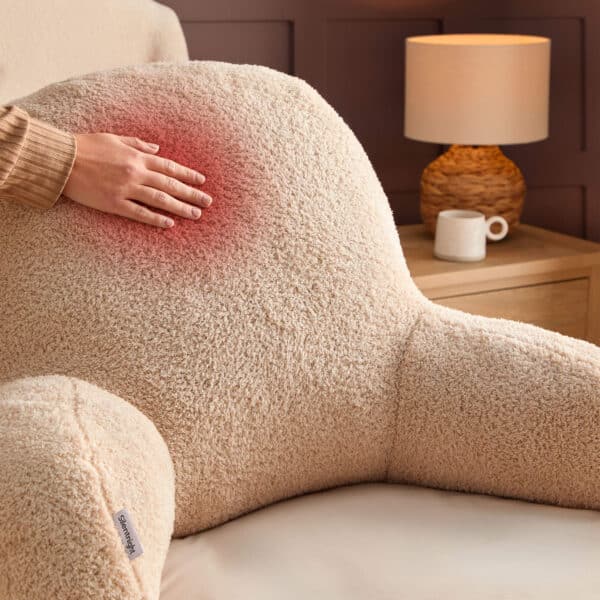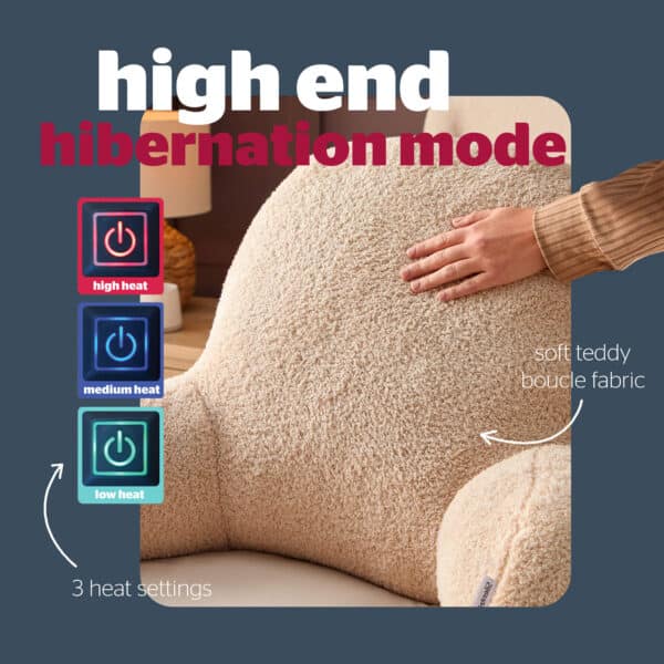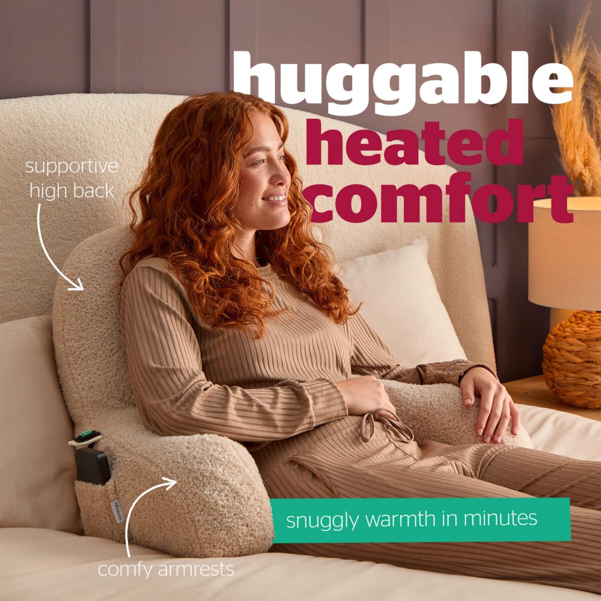 - HUGGABLE COMFORT & SUPPORT: Enjoy huggable heated warmth whilst you relax. Crafted from soft teddy boucle fabric and specially shaped for extra comfort and support with a high back and arm rests.