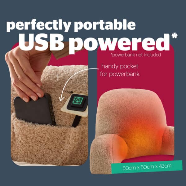 The USB Heated Cuddle Pillow is the ideal companion when working from home and is great for people who spend long hours sitting down. The pillow can be easily moved around the home and can be used when reading, working from home, gaming or general relaxation. Simply plug into a USB power bank (not included) with no need for a mains plug, for ultimate warmth and convenience.