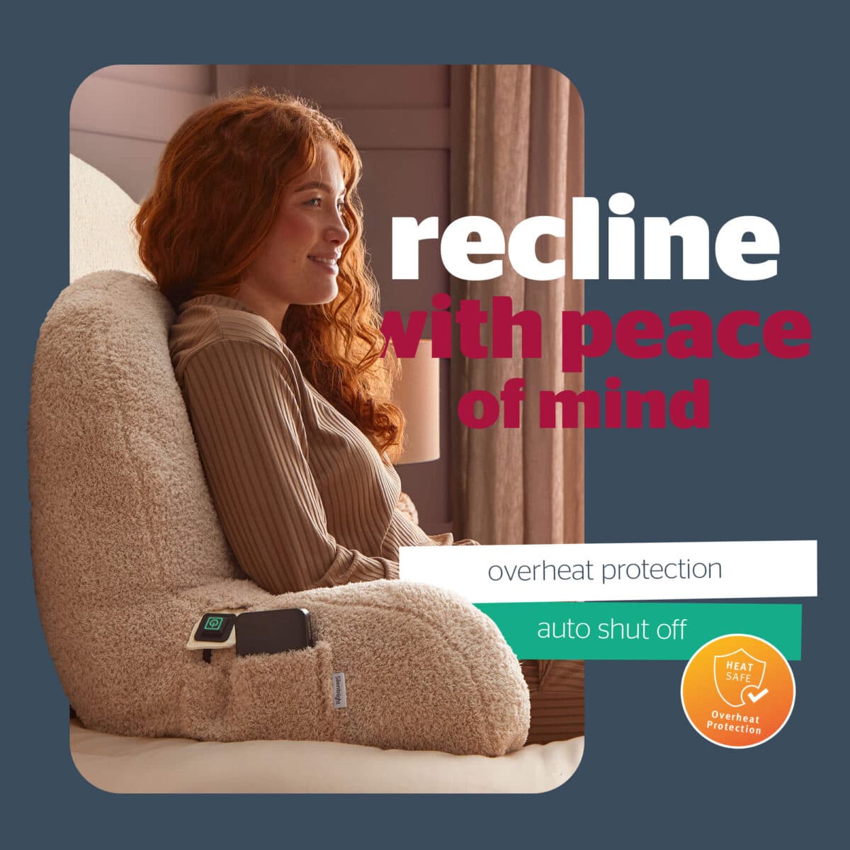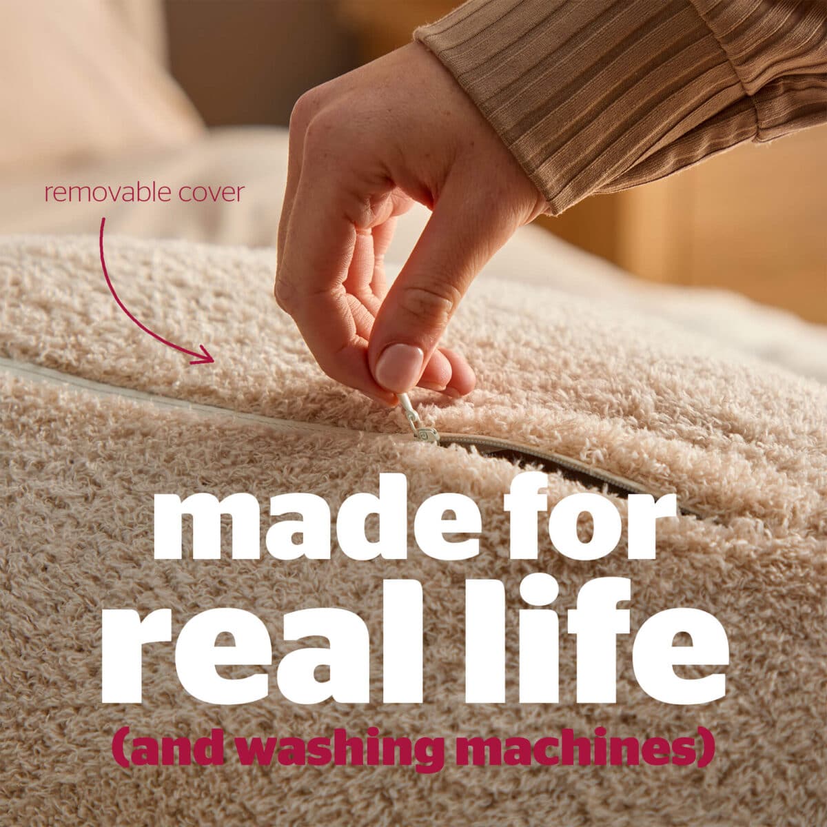 You’ll find handy side pocket storage for your phone, powerbank, earphones, snacks and more. The cover is fully removable with a hidden zip at the back of the pillow. The product features Heatsafe overheat protection and auto shut off after 2 hours for safety and for total peace of mind. The product will arrive compressed, please allow up to 72 hours for full recovery.