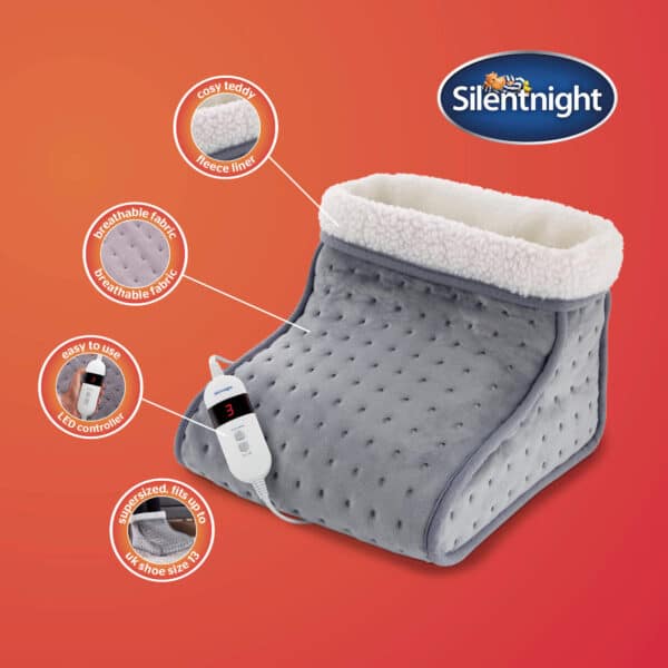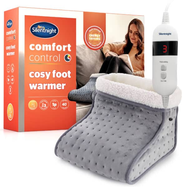 Treat your feet with the Silentnight Comfort Control Foot Warmer. Keeps your feet extra cosy and warm over the colder months, and soothes aches and pains in cold feet. The super soft teddy fleece liner provides extra cosiness, whilst the 3 heat settings allow you to choose a temperature that is just right for you. Toasty toes are just minutes away!