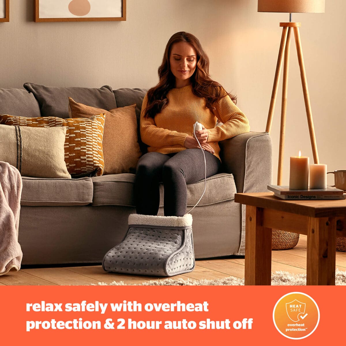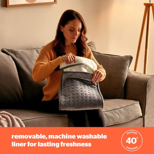 The teddy fleece liner is machine washable to keep your foot warmer feeling fresh and hygienic for longer. Featuring Heatsafe overheat protection and auto shut off after 2 hours for safety and for total peace of mind.