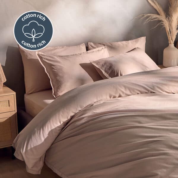 Crafted with a blend of natural washed cotton and polyester combining luxurious softness & easy-care properties. Delivering a stylish linen-look that keeps you comfortable throughout the night.