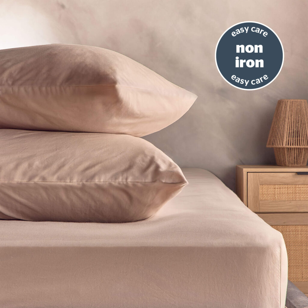 Crafted with a blend of natural washed cotton and polyester combining luxurious softness & easy-care properties. Delivering a stylish linen-look that keeps you comfortable throughout the night.