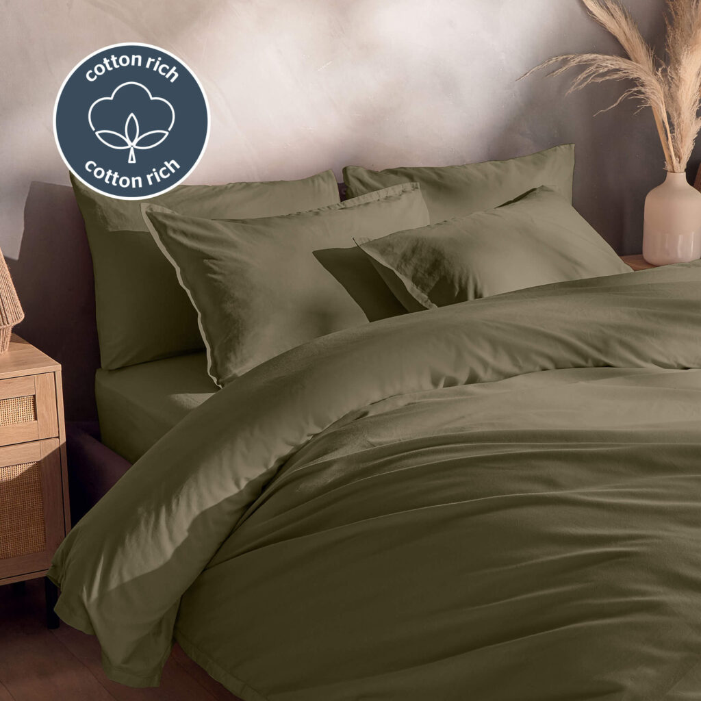 Crafted with a blend of natural washed cotton and polyester combining luxurious softness & easy-care properties. Delivering a stylish linen-look that keeps you comfortable throughout the night.