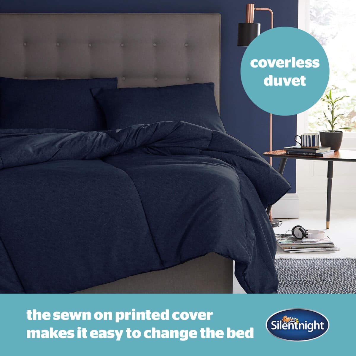 - COVERLESS DUVET: The Silentnight Coverless Duvet Set comes with a sewn-on printed duvet cover so there's no need to wrestle with the duvet cover again. Which means dressing and changing your bed is a hassle-free dream! Matching pillowcases are included.