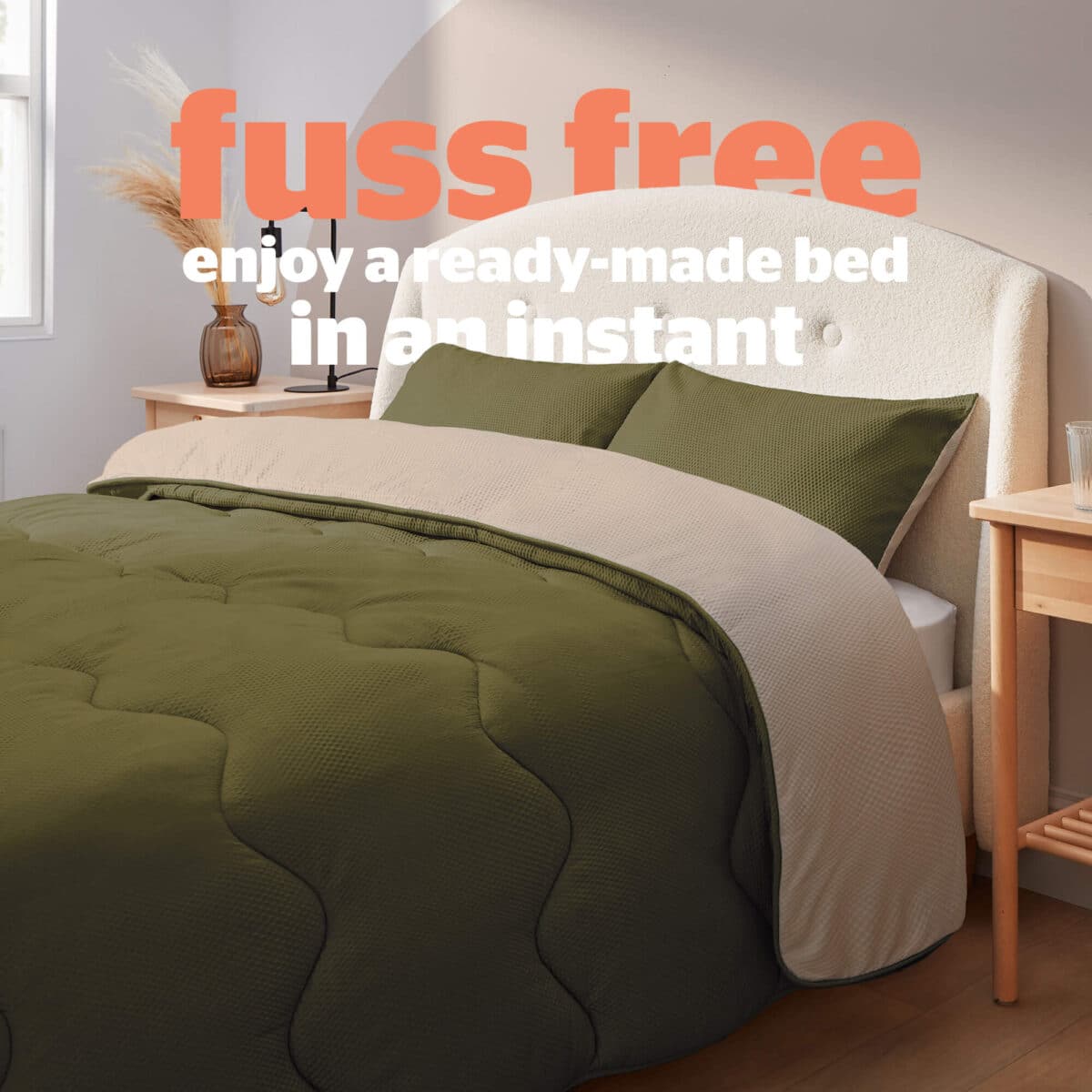 Made for busy lifestyles and relaxed mornings, discover the fuss-free way to enjoy a beautifully made bed. Made with a soft seersucker finish and designed with trend-led colours for effortless comfort and style. This all-in-one duvet eliminates the need for separate covers, offering comfort and convenience.