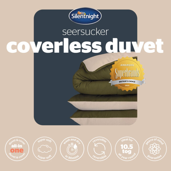 Set includes a soft seersucker trend-led duvet complete with matching pillowcase(s). Whether you’re refreshing your guest room, or upgrading you own sleep sanctuary, the Coverless Duvet combines everyday convenience with signature Silentnight comfort.