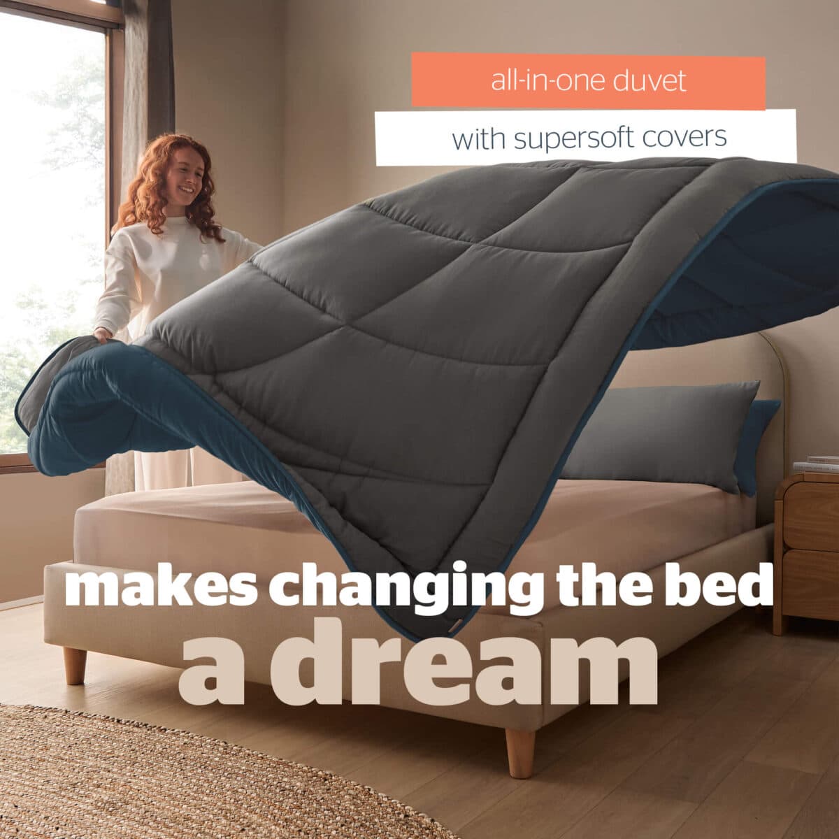 Made for busy lifestyles and relaxed mornings, discover the fuss-free way to enjoy a beautifully made bed. This ultrasoft all-in-one duvet eliminates the need for covers, offering comfort and convenience.