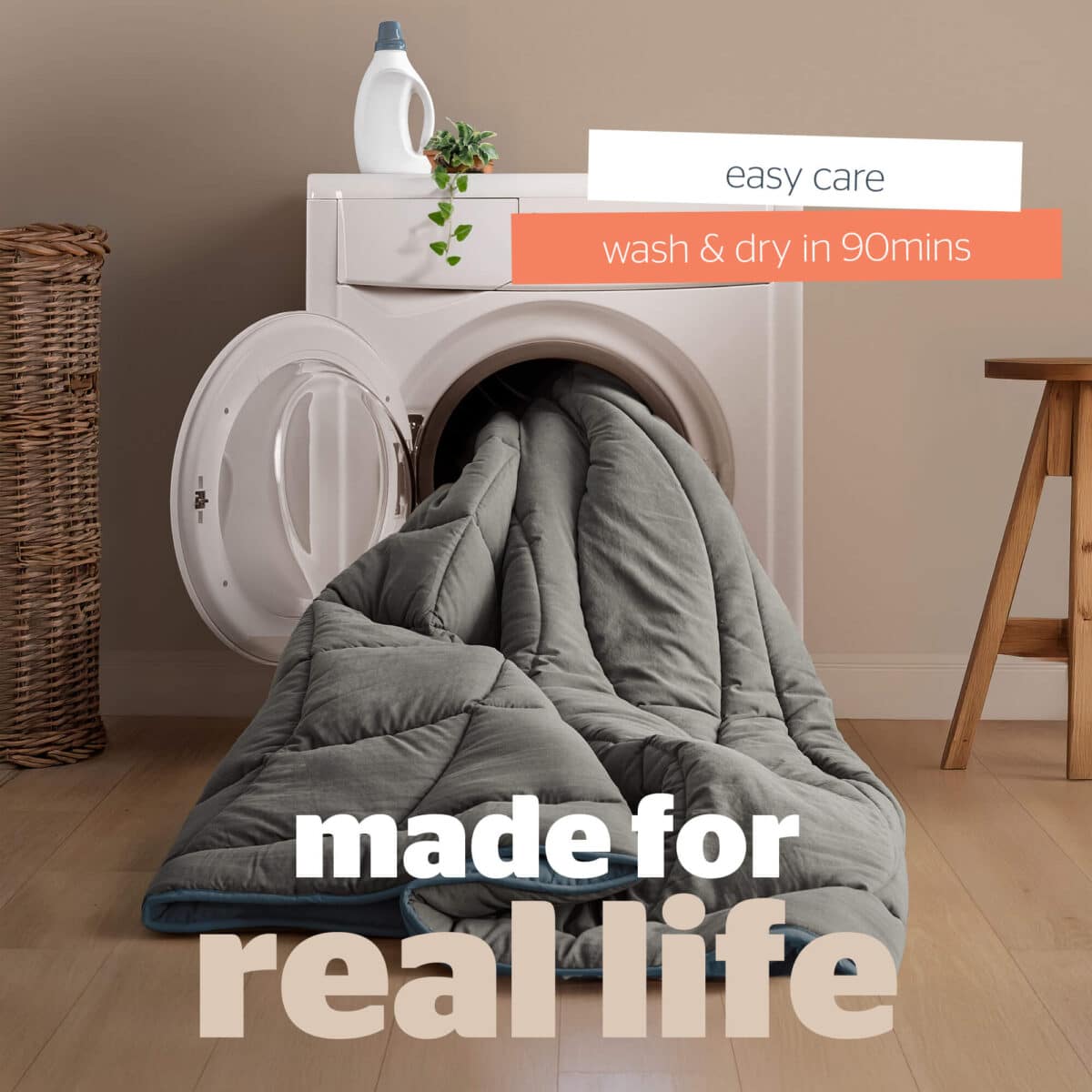 Made for busy lifestyles and relaxed mornings, discover the fuss-free way to enjoy a beautifully made bed. Made with an ultrasoft washed finish and designed with trend-led colours for effortless comfort and style. This all-in-one duvet eliminates the need for seperate covers, offering comfort and convenience.