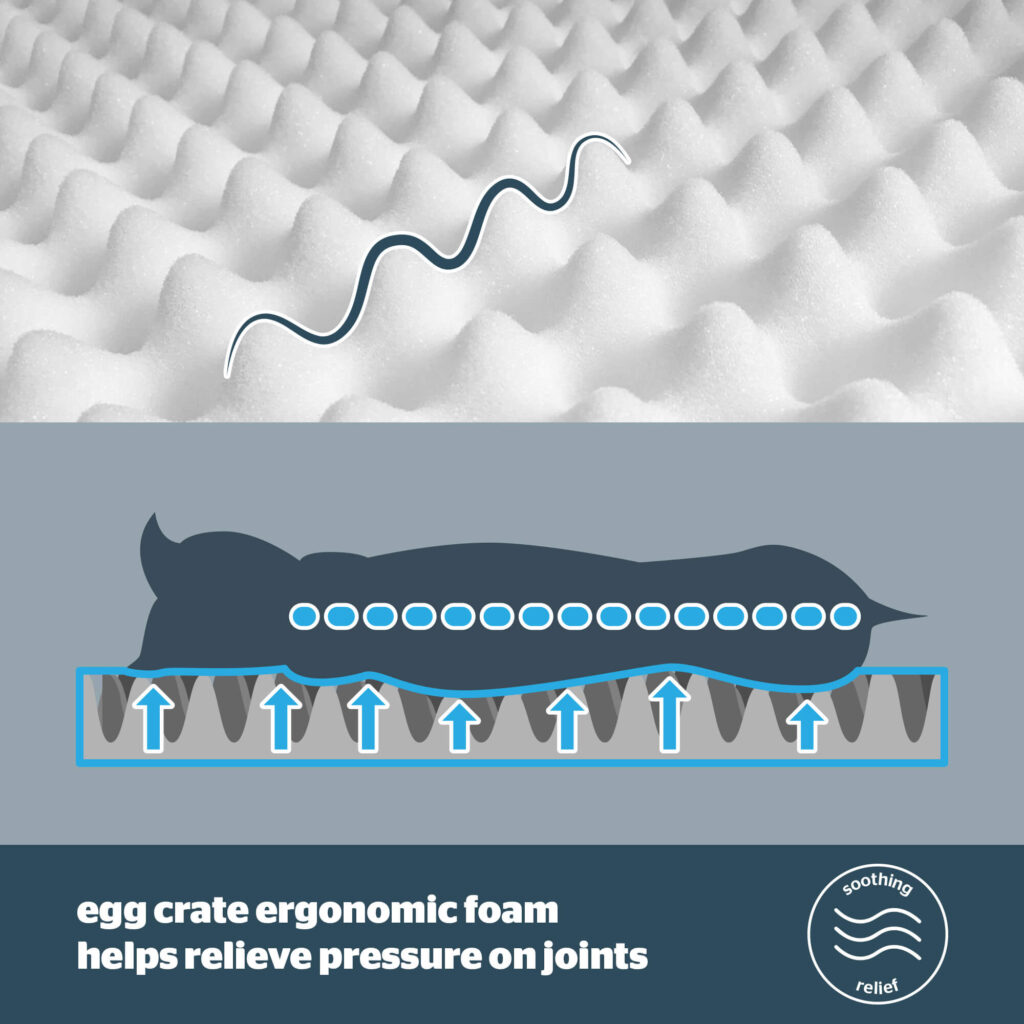 - FIRM SUPPORT: The 7.6cm deep Firm Support Crate Mattress provides orthopaedic full body support, distributing the weight evenly and reducing pressure on joints. The egg crate style ergonomic foam is softer than standard flat foam, and allows better air circulation, for ultimate comfort, support, and breathability.