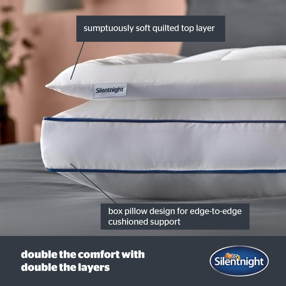 - DUAL LAYER LUXURY: Double the comfort with double the layers. A box pillow for edge-to-edge cushioned support teamed with a sumptuously soft quilted top layer, for a luxurious night's sleep.