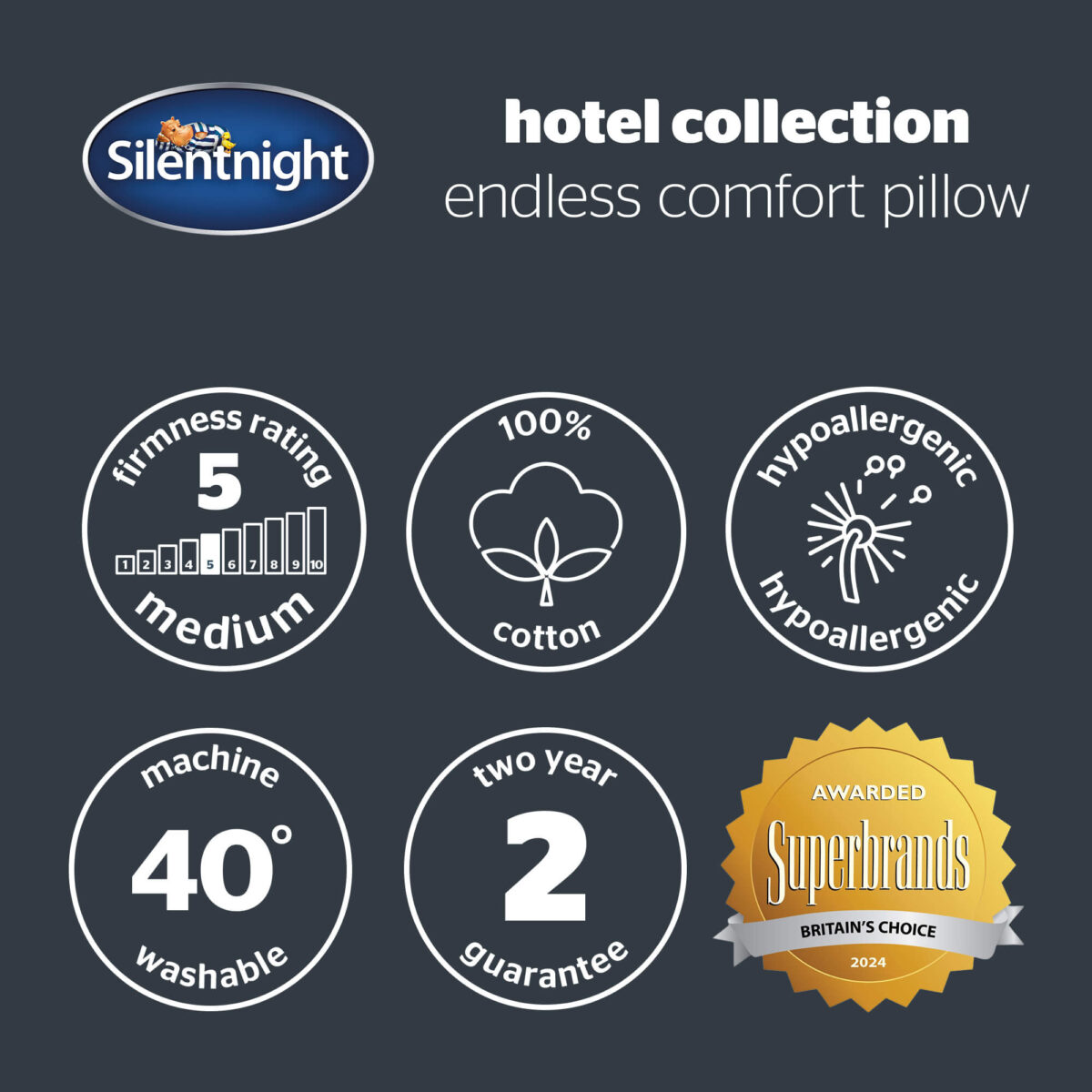 Indulge in 5-star luxury hotel comfort night after night with the Silentnight Hotel Collection Endless Comfort Pillow.