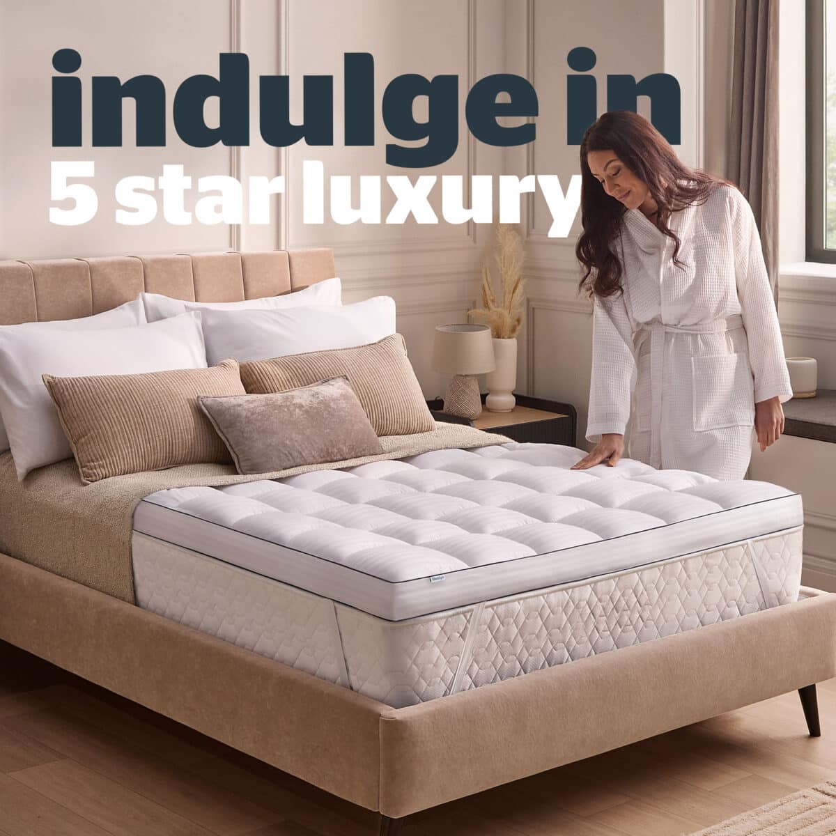 Indulge in the next level luxury of a 5-star retreat every night. Sumptuously soft and stylish hotel mattress topper crafted for ultimate comfort with a generous 10cm deep fill and elegant embossed covers to bring the luxury of a high-end hotel right to your home.