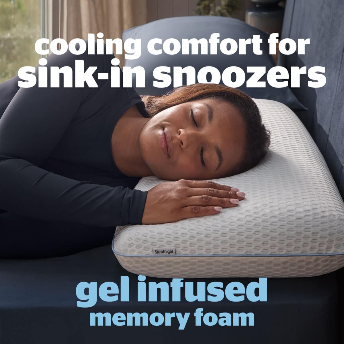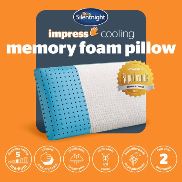 Impress memory foam moulds around your head for soothing pressure relief and personalised comfort; gently hugging you to sleep. Infused with an innovative cooling gel for refreshing sink-in comfort.