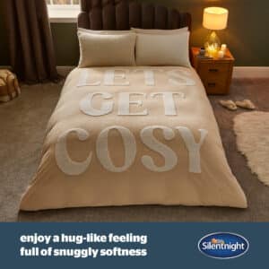Get ready to get cosy and experience a warm hug like feeling full of teddy softness as you snuggle into the Silentnight Let’s Get Cosy Duvet Set.