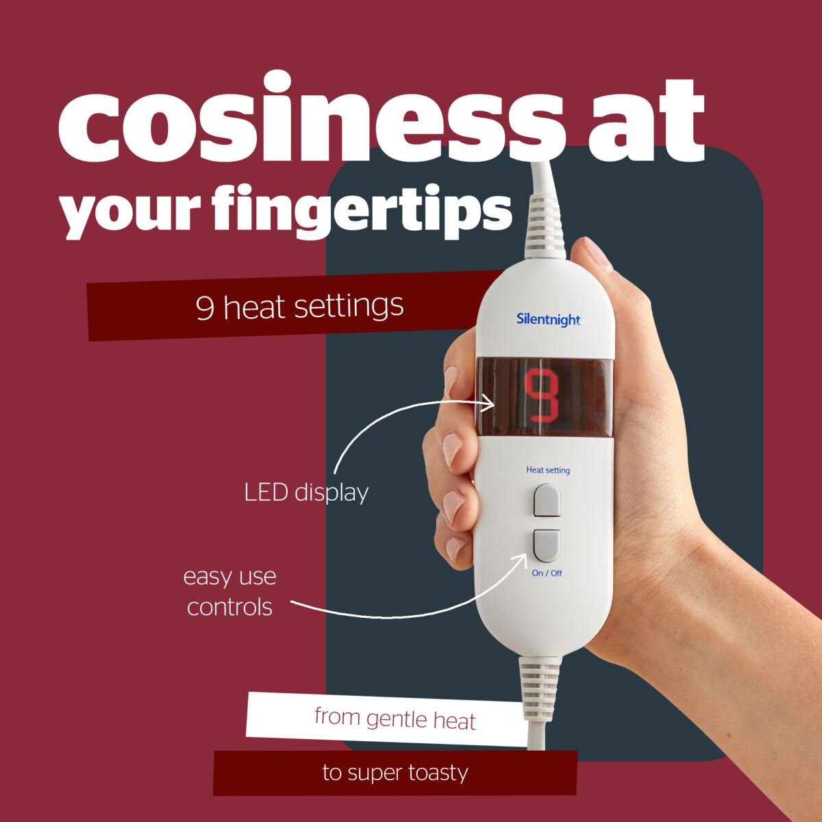 - 9 HEAT SETTINGS: Featuring 9 heat settings so that you can control your comfort and choose the warmth that suits you best. Choose settings 1-6 for slower heat up and moderate warmth, or 7-9 for faster, ultimate cosiness.