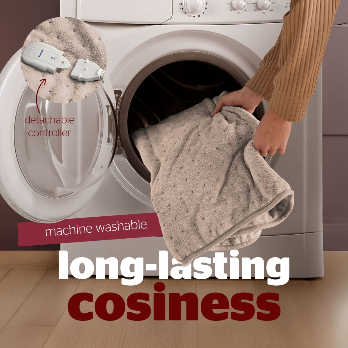 - MACHINE WASHABLE: Machine washable to keep your electric blanket feeling fresh and hygienic