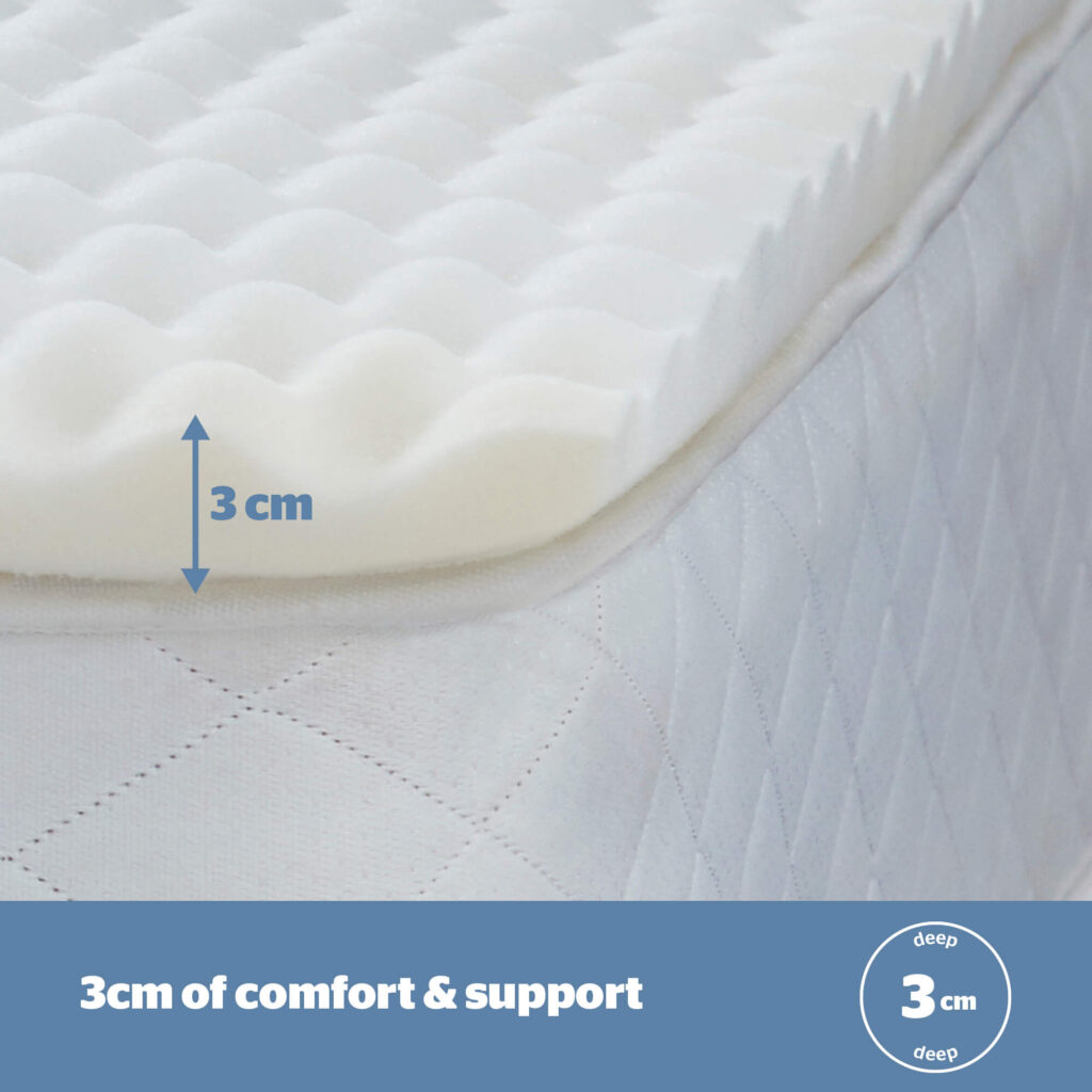 - 3CM DEEP: Transforms your existing mattress by adding an extra 3cm of comfort and support.
