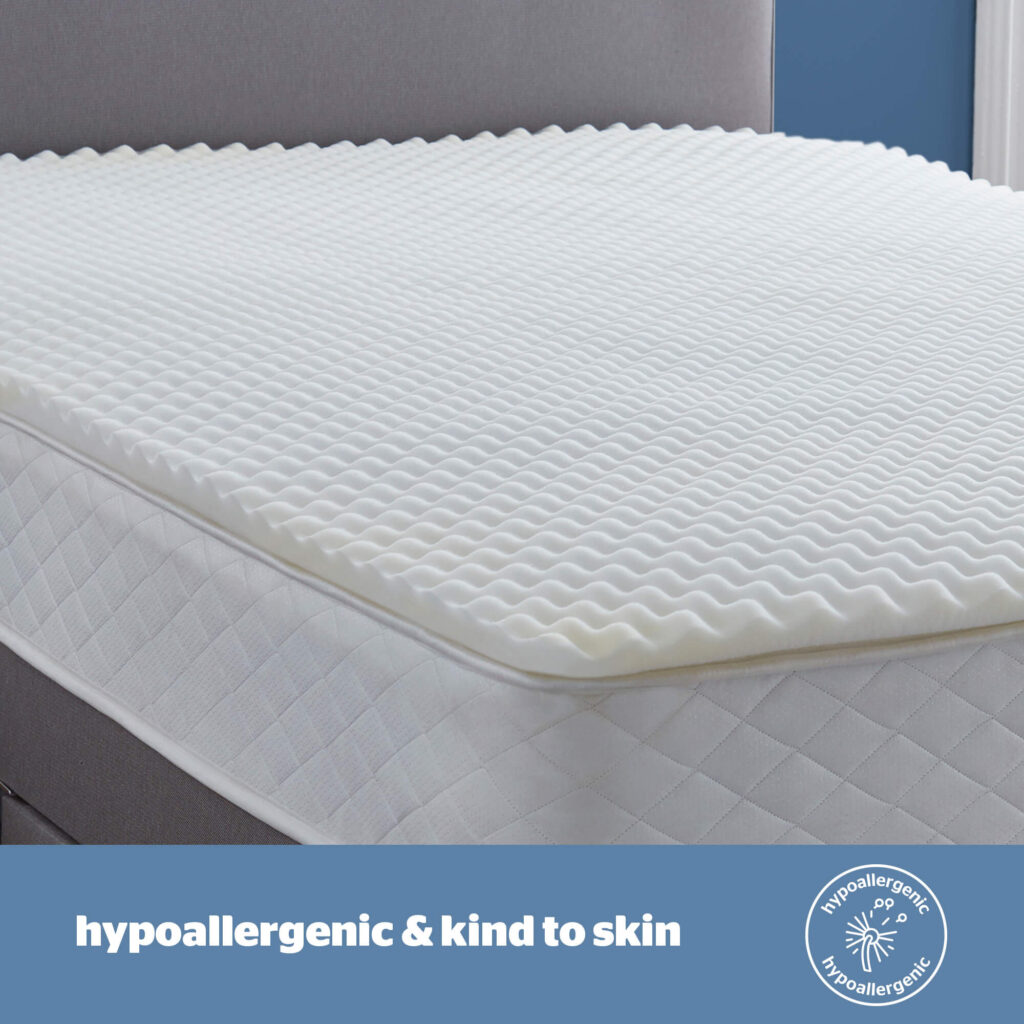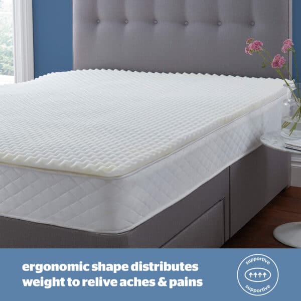 The Orthopaedic Support Mattress Topper by Silentnight offers comfort, support, and pressure relief. The 3cm deep foam mattress topper features an innovative profiled design which is designed to relieve joint pain and muscle stress, so you can have a peaceful and relaxing night’s sleep whilst reducing pressure points. The ergonomic design also encourages airflow to prevent overheating.