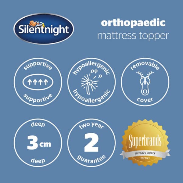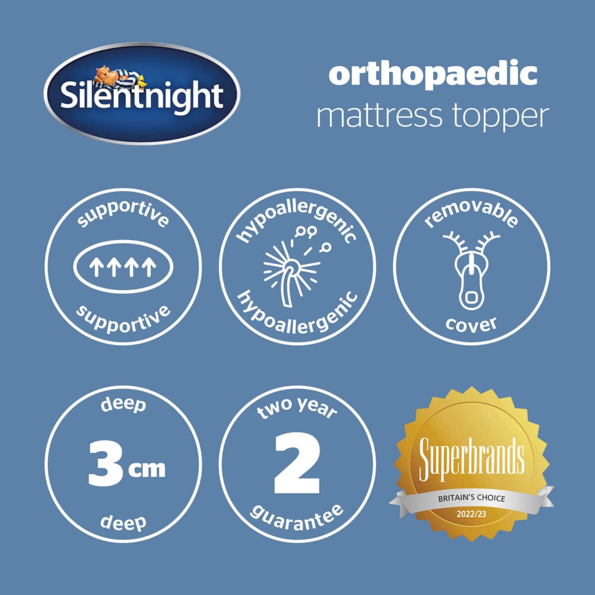 The Orthopaedic Support Foam Topper by Silentnight has been designed to provide both comfort and support when you are sleeping, helping to give you a better quality sleep.