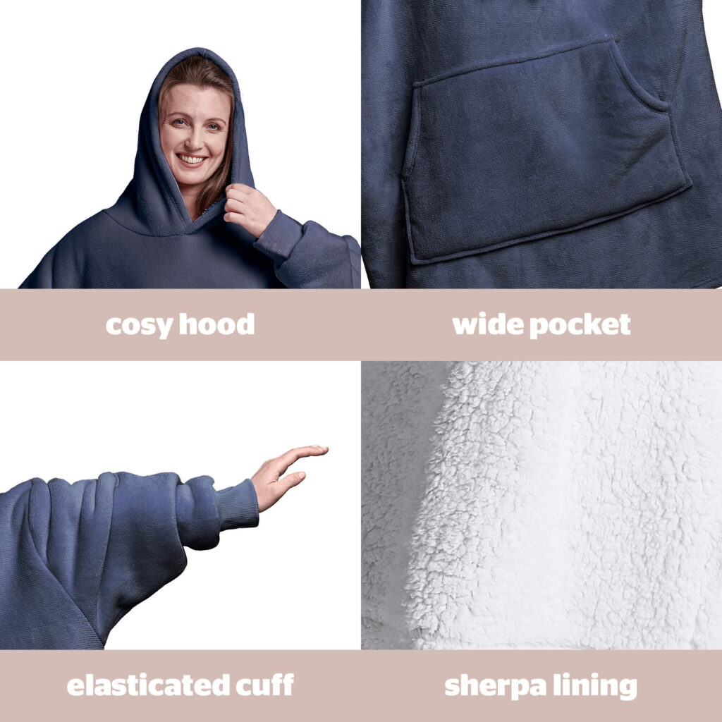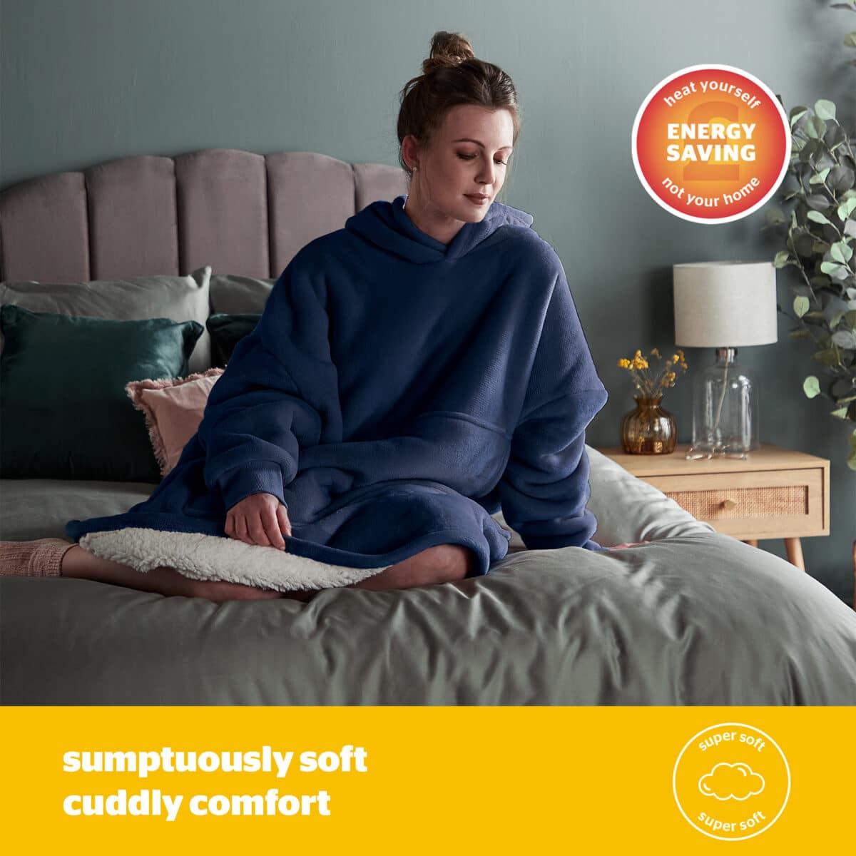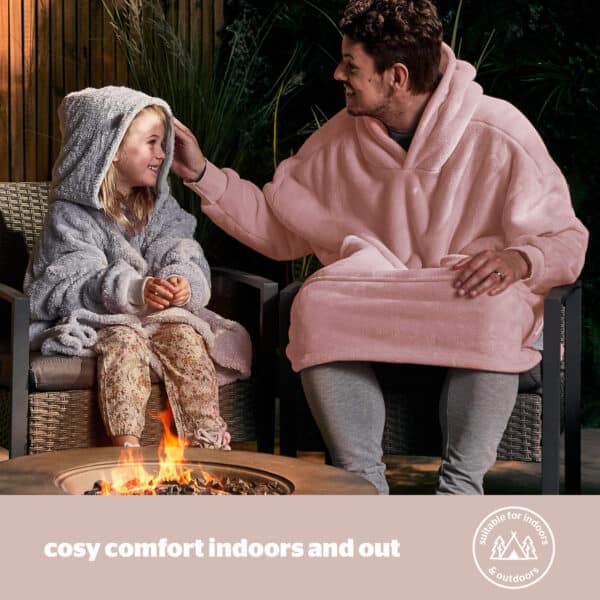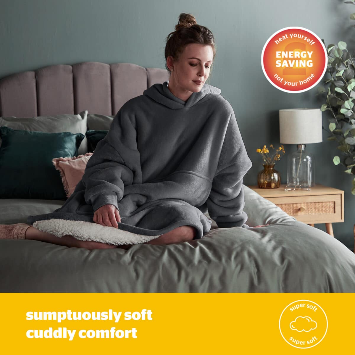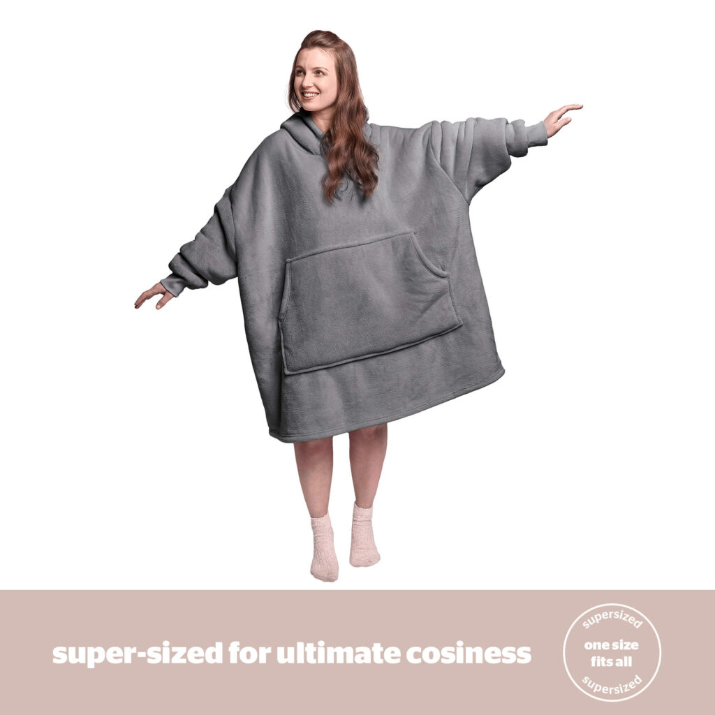 - SUPER-SIZED: Super-sized for ultimate cosiness, one size fits all. The cosy fleece hoodie and elasticated sleeves add extra comfort so you can feel snug as a bug!