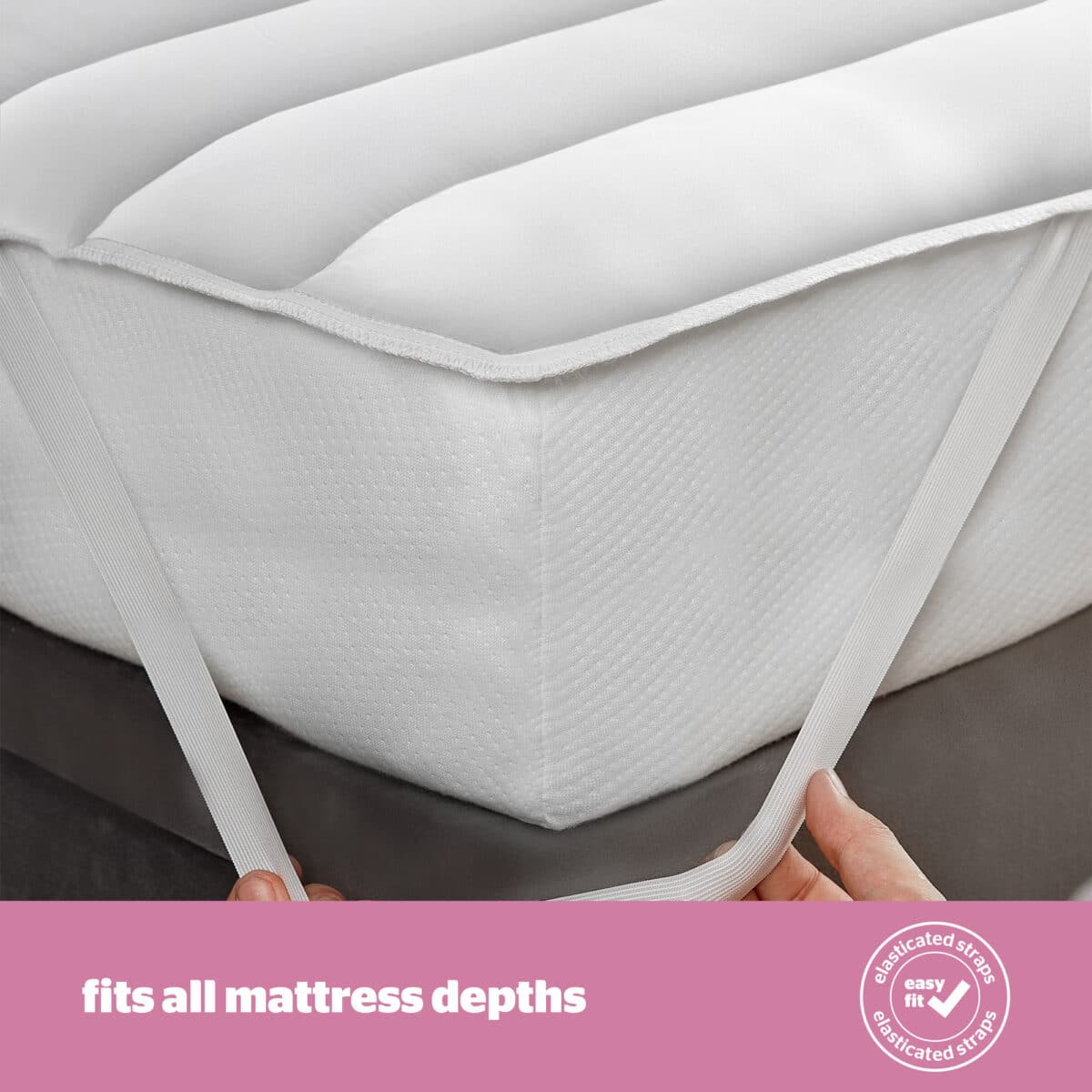 - QUILTED COMFORT: The soft touch quilted cover is filled with soft and comfortable hollowfibre which helps to add an extra layer of cushioned comfort to your mattress.