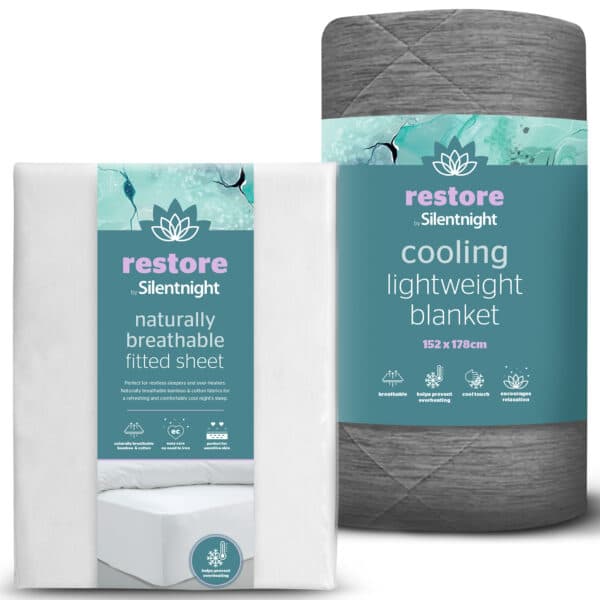This Restore Bundle by Silentnight is perfect for overheaters and restless sleepers, offering instant cooling comfort and a refreshing nights sleep.