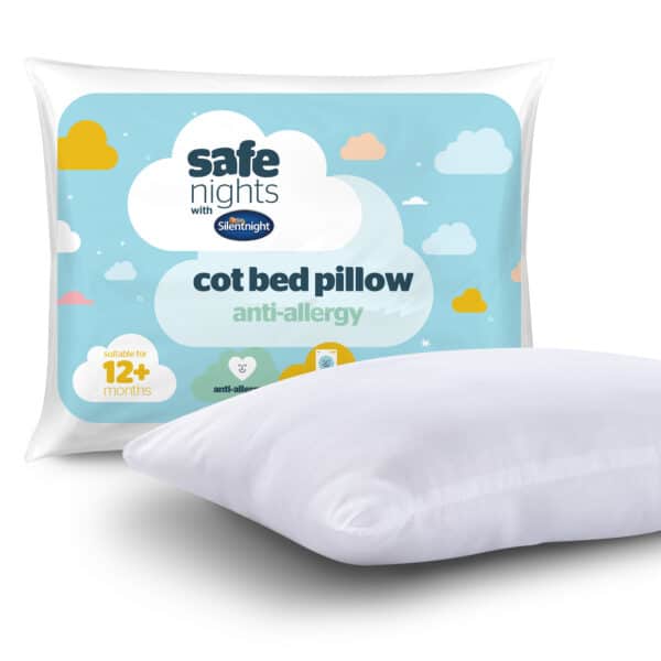 The Safe Nights Anti-allergy Cot Bed Pillow by Silentnight is soft and slim and has been uniquely designed with your little one’s comfort in mind. Little heads and necks need a different pillow height and support to adults, so we have designed this to be uniquely slim and softly supportive. Filled with anti-allergy fibres that keep bacteria at bay for a comfortable, hygienic sleep. Suitable for 12 months+.