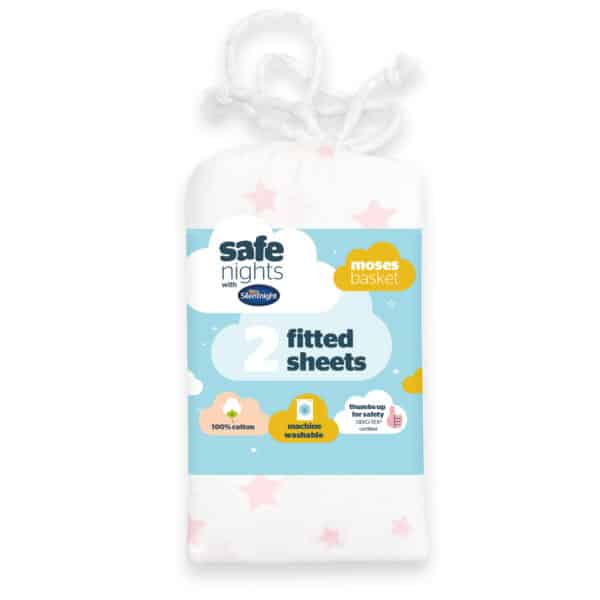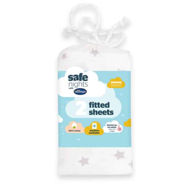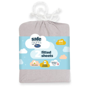 It’s important that sheets fit neatly around your baby’s mattress for comfort and safety. The Silentnight Safe Nights fitted sheets are an essential for every nursery. Made from 100% cotton which is soft and breathable with your babies’ comfort in mind, always. The handy 2 pack means you will always have a spare. The sheets feature elasticated edges to provide a snug fit to your babies’ mattress.