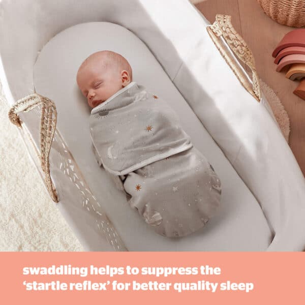 - CALMING COMFORT FOR BETTER SLEEP: Our swaddle wraps help to recreate the safe and comfortable feeling of the womb, helping your baby to settle into a calm sleep. Swaddling helps to suppress the 'startle reflex' which is a common sleep disturbance in babies, so your little one can enjoy longer, less interrupted sleeps.