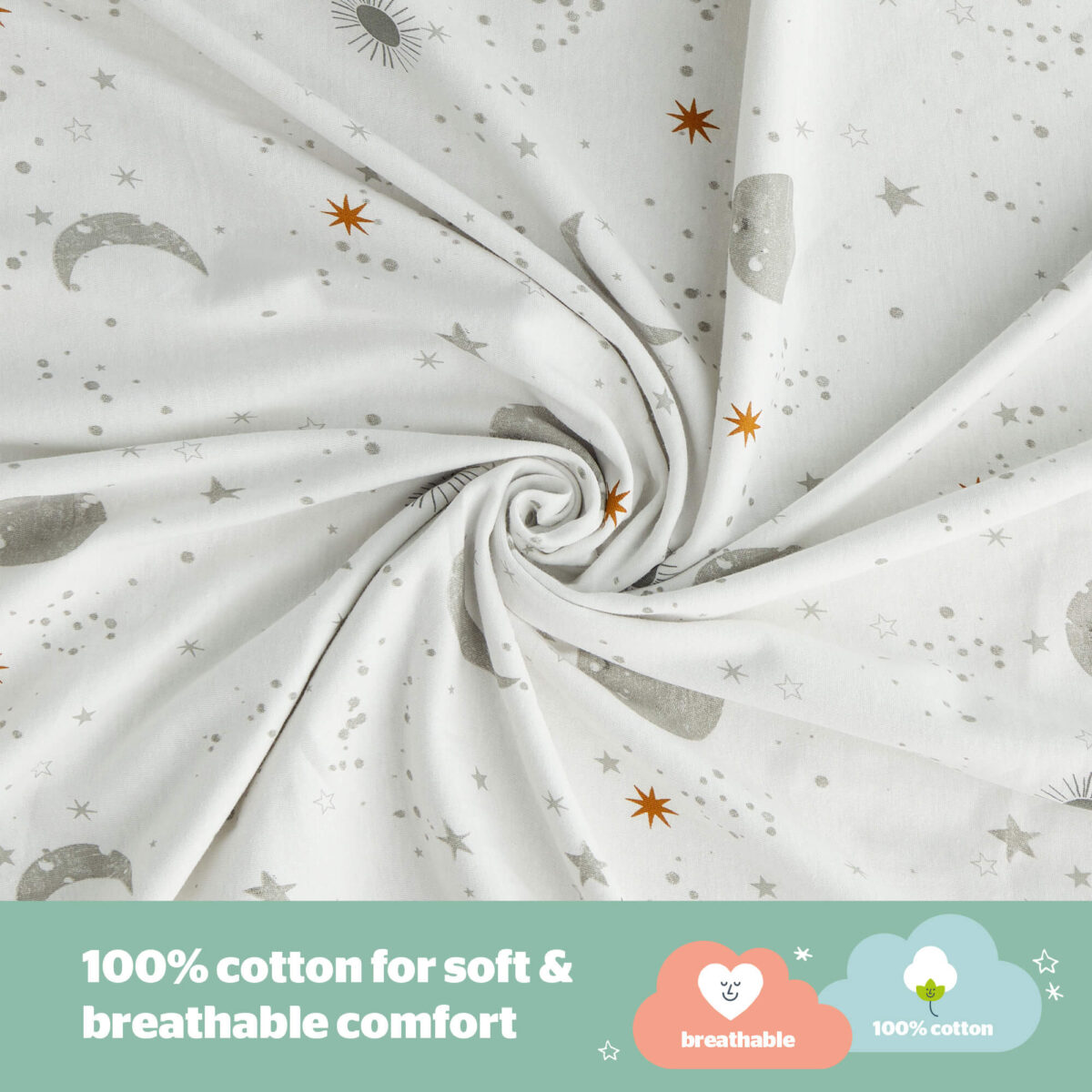 - SUPER SOFT AND BREATHABLE: Made with a super soft 100% jersey cotton, the breathable fabric allows your baby's body temperature to regulate and prevent overheating whilst sleeping.