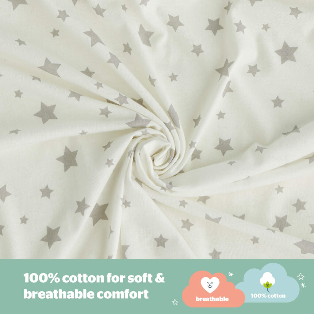 - SUPER SOFT AND BREATHABLE: Made with a super soft 100% jersey cotton, the breathable fabric allows your baby's body temperature to regulate and prevent overheating whilst sleeping.
