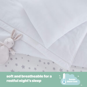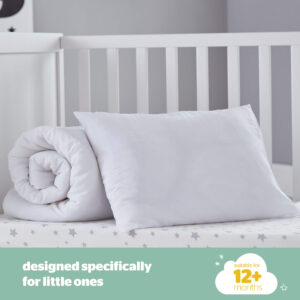 The Safe Nights Toddler Bedset by Silentnight is soft and breathable, designed specifically with your little one’s comfort in mind. Filled with anti-allergy fibres for a comfortable, hygienic sleep with anti-bacterial fibres protecting your little one from bacteria that may ordinarily live in their duvet. The set contains a soft and slim pillow that has been uniquely designed with your little one’s comfort in mind. Little heads and necks need a different pillow height and support to adults, so we have designed this to be uniquely slim and softly supportive. The 4.5 tog duvet keeps your little one at just the right temperature to prevent overheating.